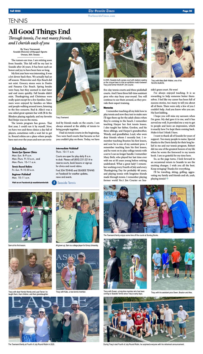 As a kid learning to play on an asphalt court with a chain link fence for a net, Tracy Townsend never imagined he’d run a wildly successful resort tennis program in the world’s first New Urbanist town.